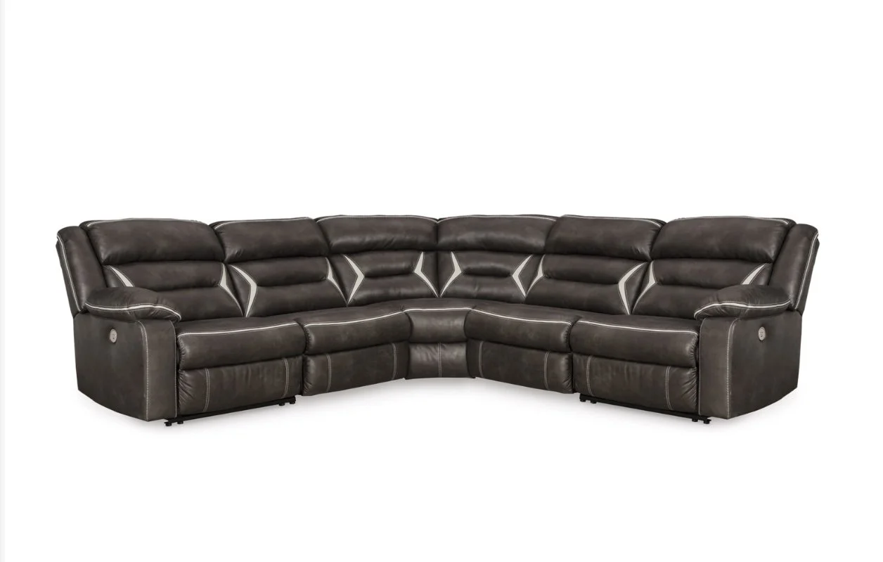Why play it safe when you can make a statement? This power reclining sectional is designed to impress with its ultra-cool, contemporary look and exceptional comfort. Fashion-forward faux leather, accented with contrast stitching, brings sleek sophistication, while plush pillow-top armrests and channel-tufted cushions ensure it feels just as good as it looks.